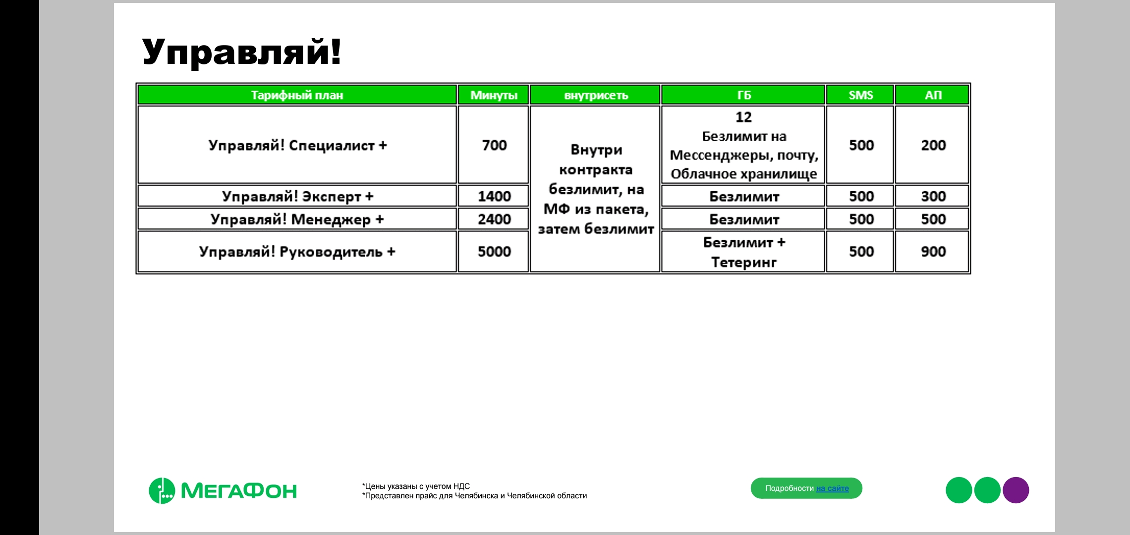 По сути на сегодня есть серия непубличных тарифов от того же мегафона