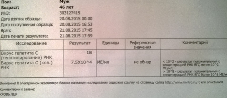 Гепатит С 1а, начало терапии 03.09.2015