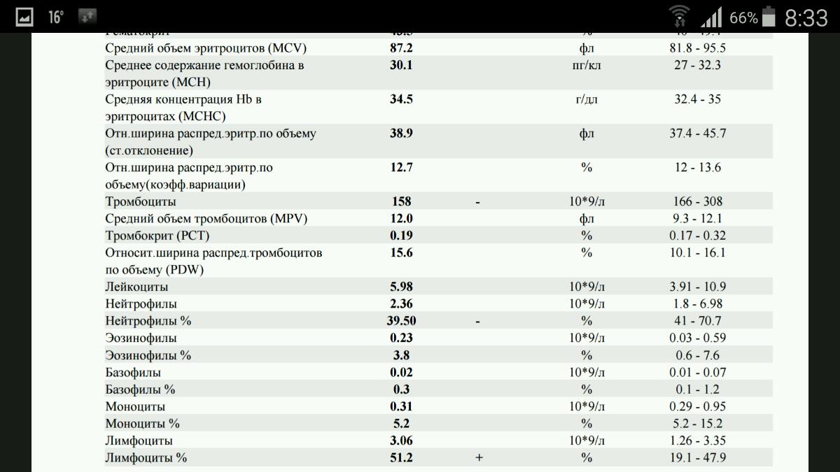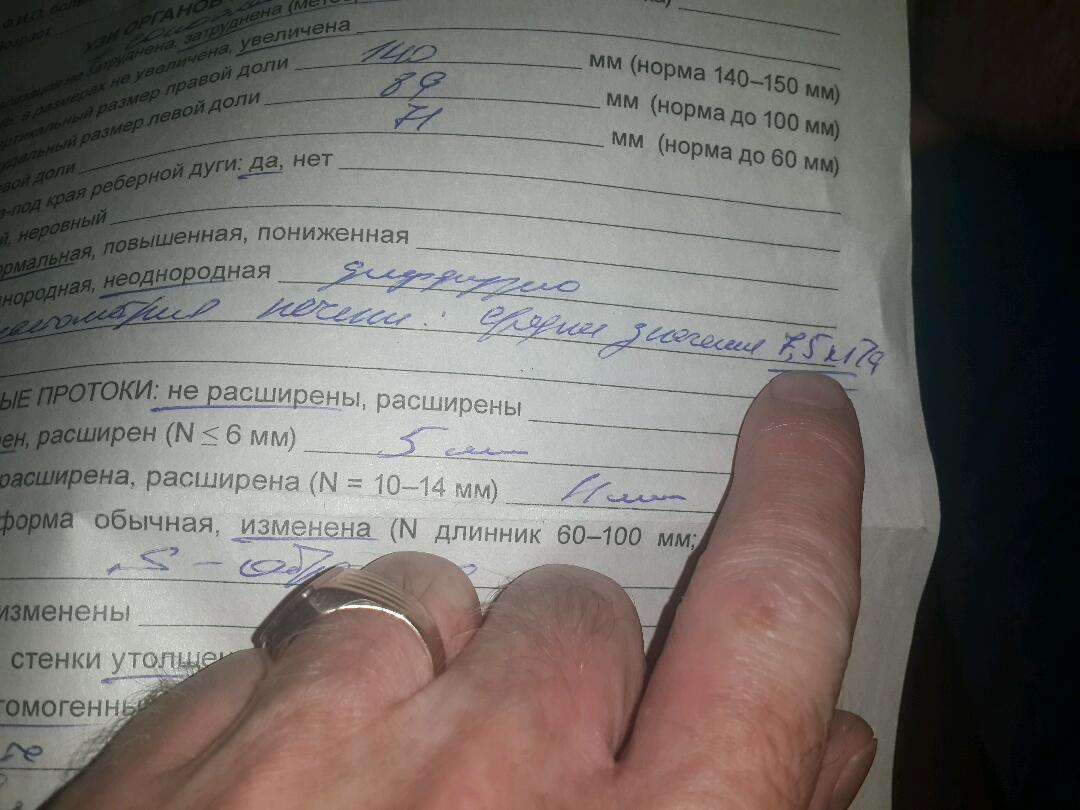 . Что то обленился в отпуске. Осталось завтра выпить последние 84 таблы. Что то чем ближе к окончанию теры, тем больше мандража перед анализами. В начале можно было что то поменять, а теперь всё позади, что выпил, то выпил. Основные сомнения по фиброзу были, но вроде ушли. Хотя тромбы так и прыгали в районе 100-120, в поликлиннике 180-210 (наверное ручками считают). Нейтрофилы так же стабильно чуть ниже нормы. Сделал узи тут в отпуске, потом почитал, написано про печень: сосудистый рисунок обеднён. Что значит, не знаю. Остальное вроде более менее пойдёт.
