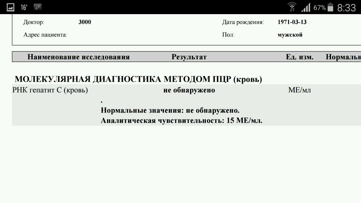 Не выдержал, сдал анализы после 4 недель. Оак, биохим, пцр, хеликобактер, лямблии и паразитов ещё 3 штуки. Пришли вчера оак и биох. Практически так же, как и сразу после пвт. Сегодня с утра пришёл самый главный. Однако, волнительно открывать было. Вброс адреналина с утреца. Но всё отлично