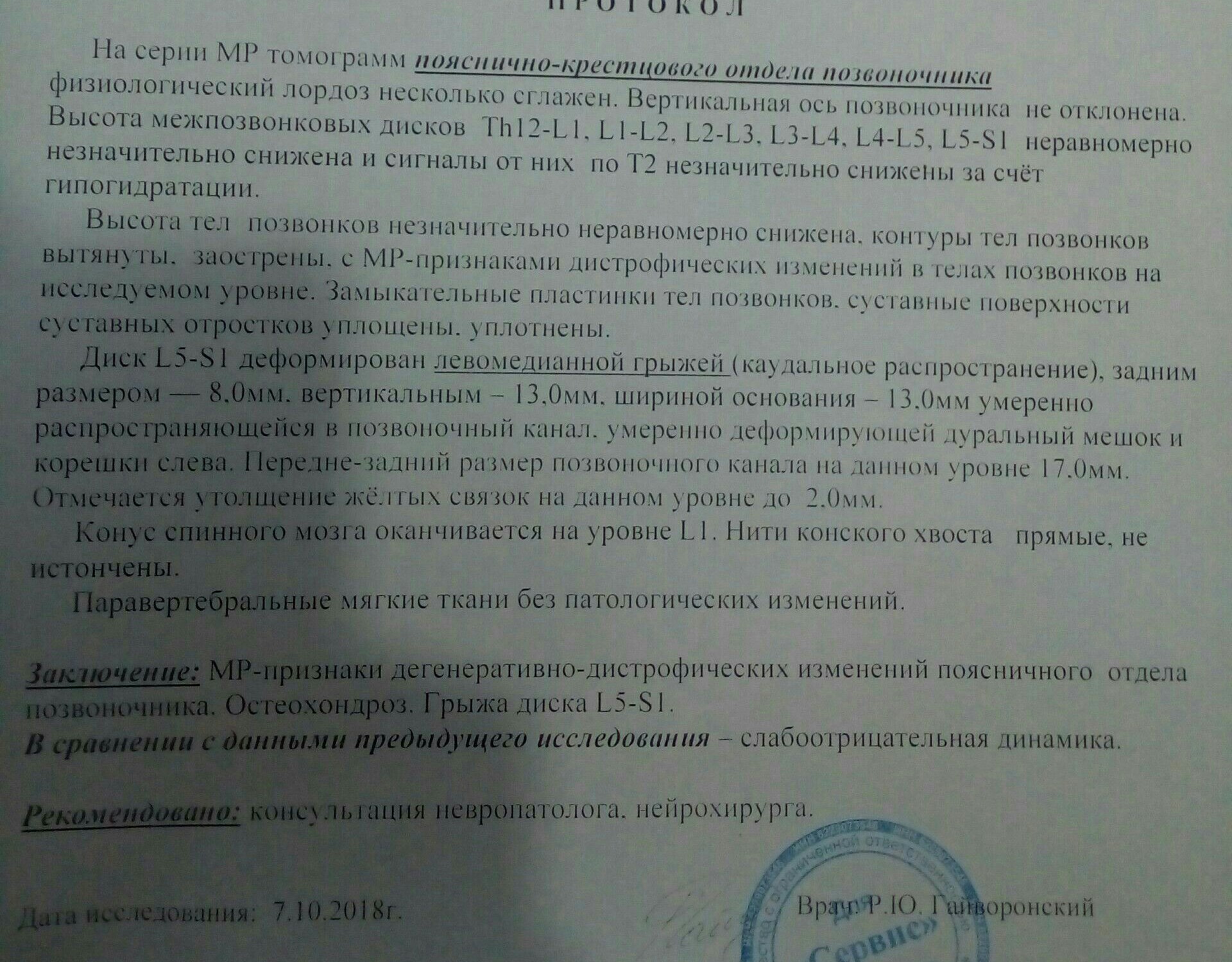 Привет,да,вижу грыжа 8мм,большевата уже...Операцию не предлагали?Корсет носить хотя бы и более 3 кг в одной рукой не поднимать.Хотя это не реально...Поправляйся и к неврологу нужно.Омез пей!