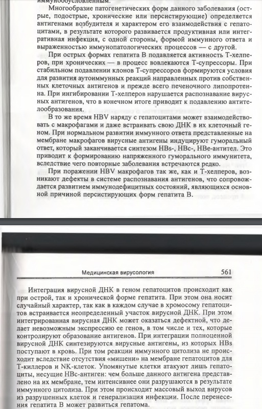 То в крови много HbsAg на который расходуются иммунные клетки. А сам вирус сидит в гепатоцитах и никаким образом снаружи не видно, что эти клетки печени заражены, но из них почему то продолжают выскакивать HbsAg.rootzomby писал(а): ↑16 окт 2018 12:23 Dmitry_n, Книжки под рукой нет.Автор её написания один?Возможно что он или заблуждается или решил сделать вызов в исследованиях гепатита В.Нигде я пока не встречал (в западных мануалах)что HBcoreAg не вырабатываются у столкнувшихся с вирусом.Так можно всех смело заносить в отряд Бэшников.