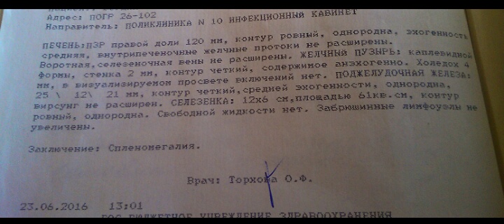 . Узи в идеале за исключением немного увеличена селезенка.