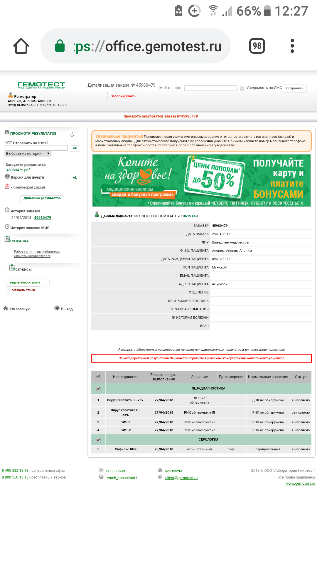 Это я выслал анонимный анализ ...первый был из спец.клиники, там и генотип определяли