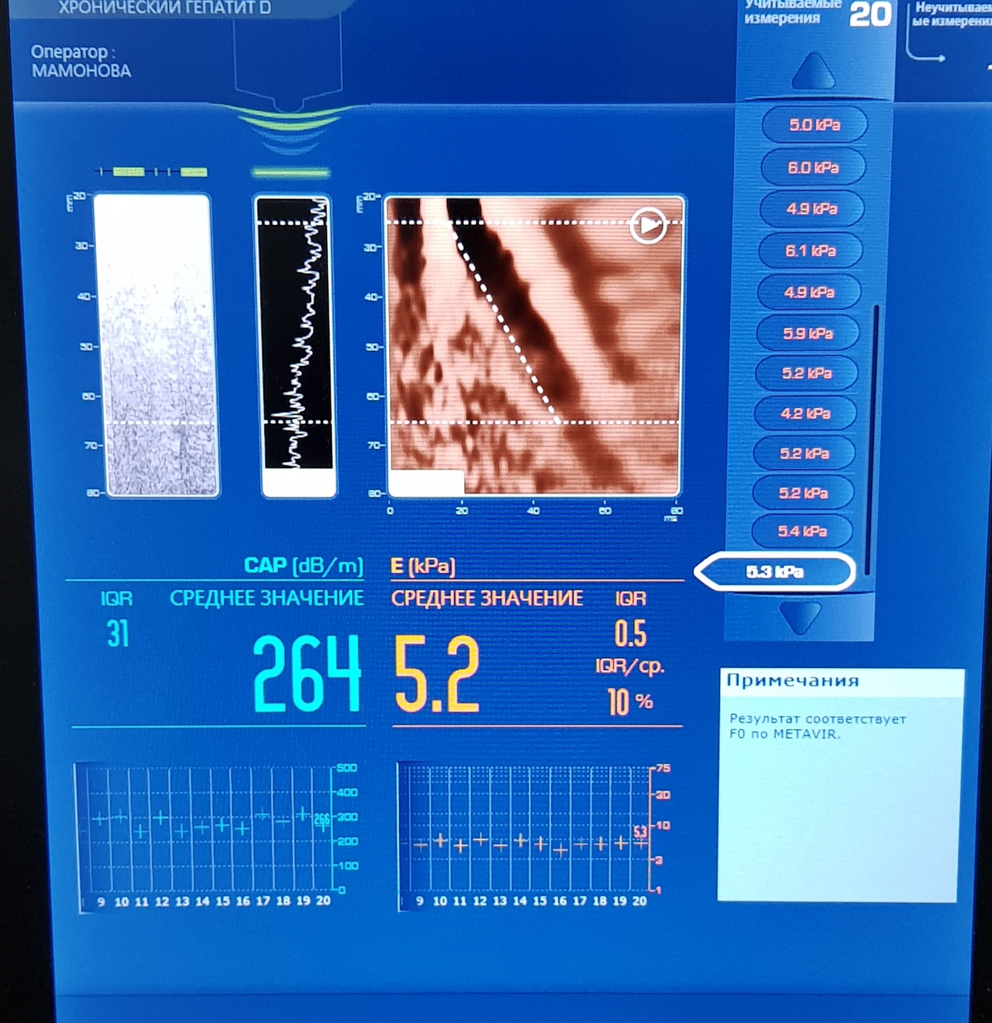 Сделал в их же центре фироскан (фото приложил) показало F0 ,до начало лечении (у нее же) даже КПа меньше было.