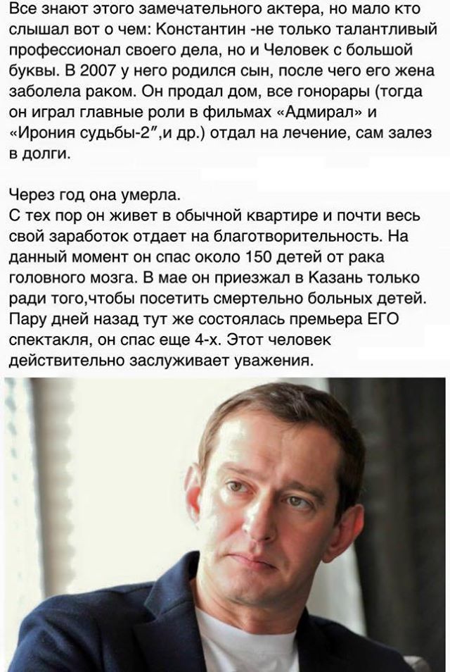 Хабенский самый Человечный Человек. Реально помогает, и помощь его ощутима . И всё без помпы и рекламы. Дай бог ему здоровья и терпения.