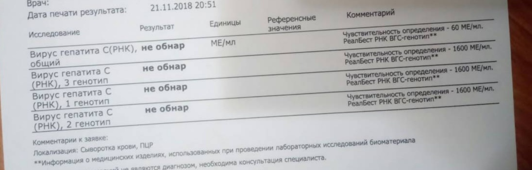 ох, старая история, лечилась около 15 лет назад, в возрасте 16 лет примерно, была ребенком, поэтому точной информацией не обладаю, лечилась феронами (возможно реаферон), уколы, от которых поднималась температура помню)) генотип первый, по букве опять же не вспомню, где-то около 4-6 мес пцр был минус после лечения, а во время беременности выяснилось что опять +, сейчас вот опять пересдала, результат положительный, но биохимию ожидала что результаты будут хуже, но как оказалось только билирубин повышен
