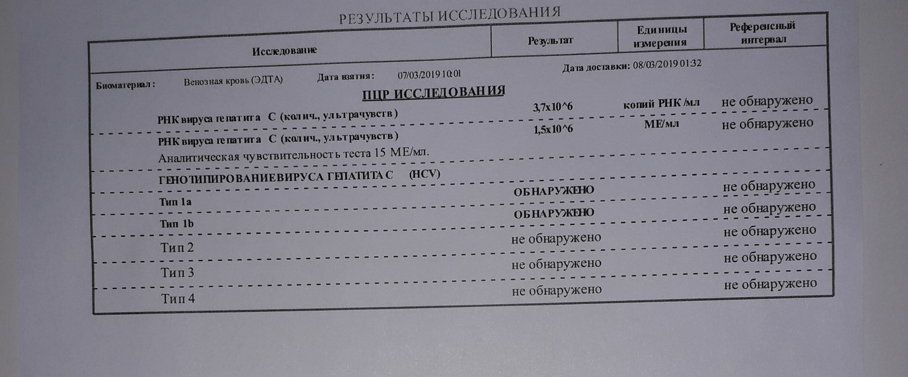 Обнаружено два генотипа 1a и 1 b.