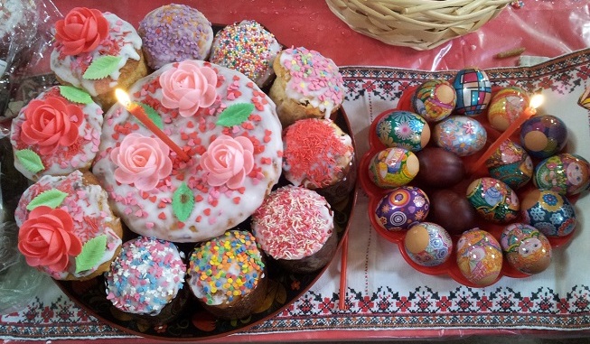 Рядом с домом строят храмовый комплекс, внутри еще голая штукатурка, но уже открыли для праздничной службы и освящения куличей. Я все освятила, к Пасхе готова.