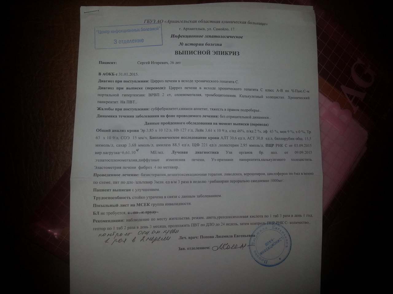 Друг: гепС, ген1, фиб4, идёт на коротких через день + рибы ( бесплатно ). Врач поставила цирроз....прикладываю выписку и интерлейкин....