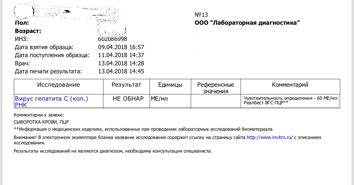 Начало ПВТ 27.03.2018. Терапия закончена 19.06.2018