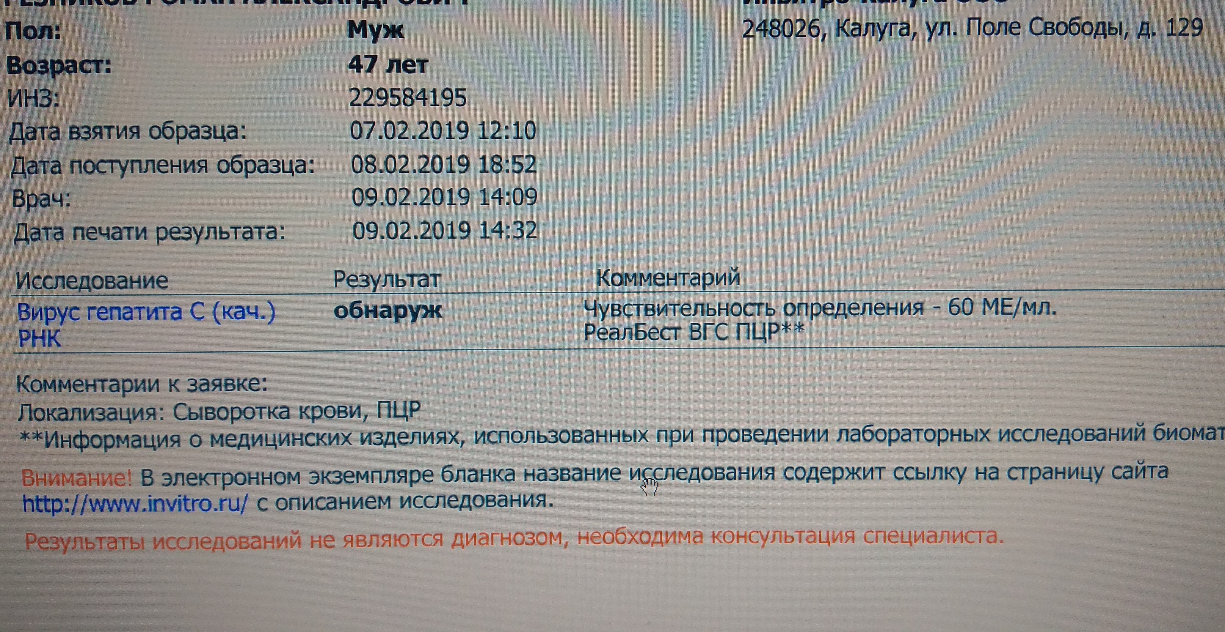 Finish 13/02/2019 -Кач.ПЦР - Не обнаружено (Инвитро 60 ме)