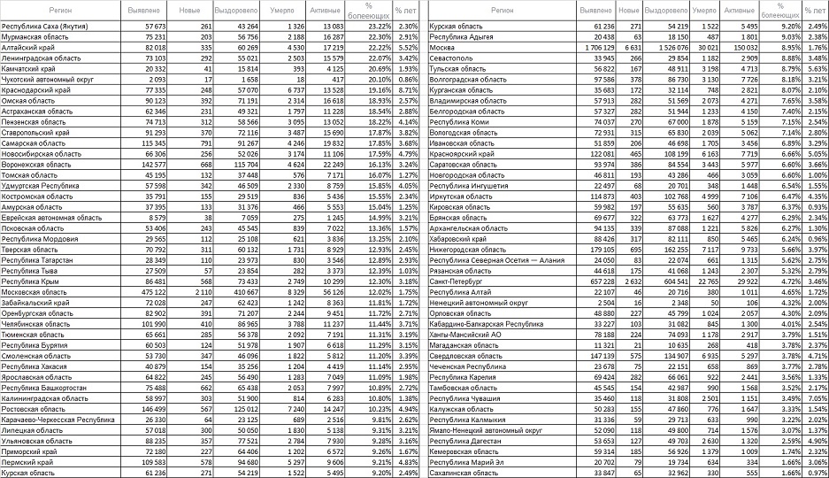 Самые болеющие регионы