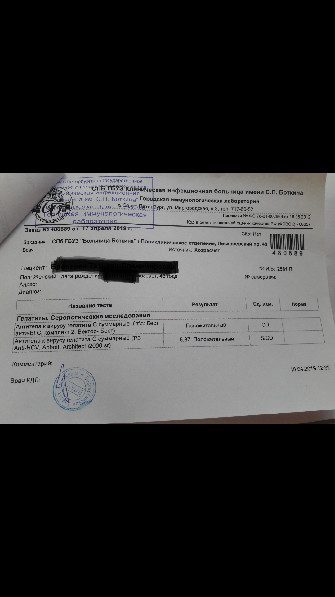 Привет всем ,я уже писала,что в декабре у меня в поликлинике ПЦР отриц.,в начале апреля в ИНВИТРО ПЦР чувств.опред.60МЕ/мл -обнаруж.+генотипиров.не обнаруж..,сегодня получила ответ из Боткина и что же дальше делать?