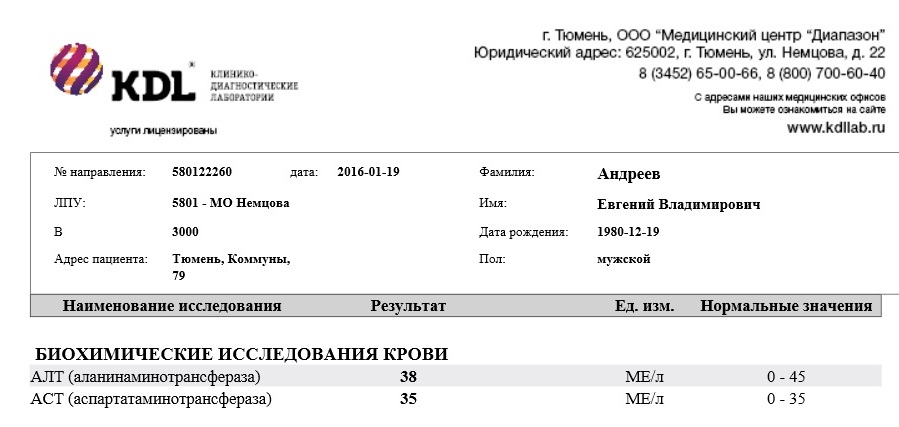 Почему трансы растут ? Я это связываю с возвратом.SergioD писал(а):Ну так и в чем беда? Все в пограничных значениях нормы.Ratibor писал(а): Завтра ПЦР будет готова, по трансам беда.