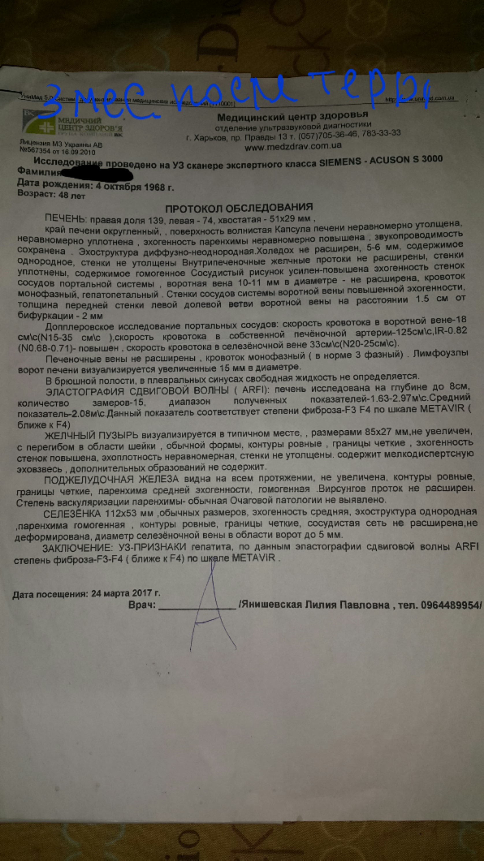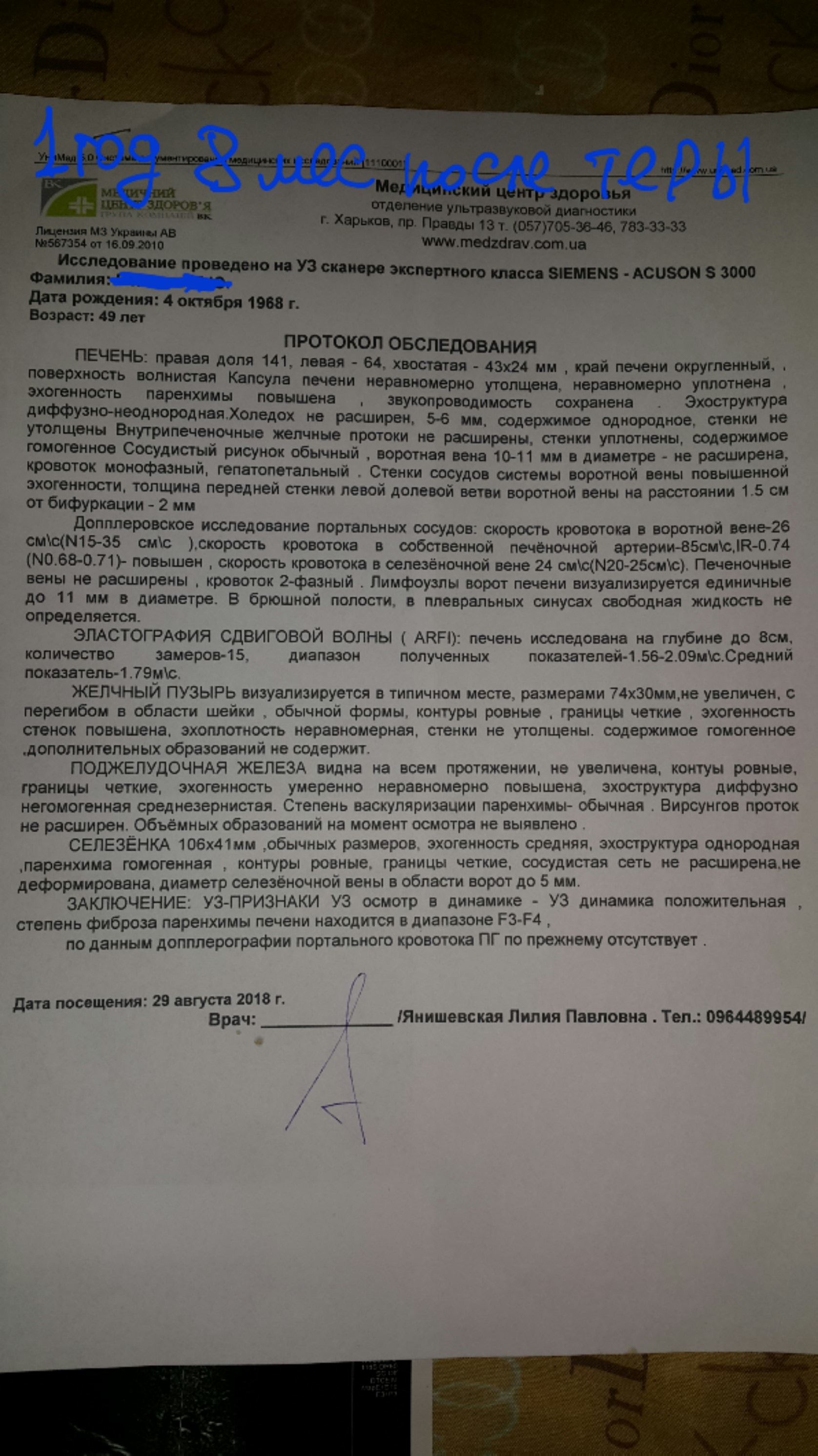 Сегодня врач меня смотрела, одна и та же, к.м.н., в режиме обычного УЗИ сказала, что получим меньшие показатели по эластичности. Кровоток стал двухфазным, что здорово !!! Эластичность сказала в диапазоне F3, но в бланке написала F3-F4, потому что некоторые замеры были выше.