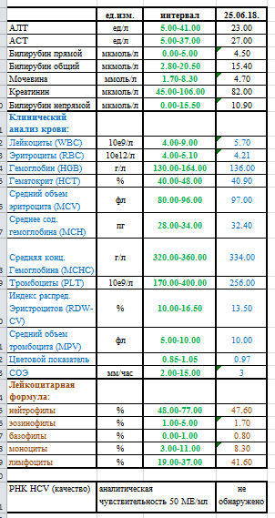 Гепатит С ген2,вирусная нагрузка 1.1х10^6 me, фиброз F0.