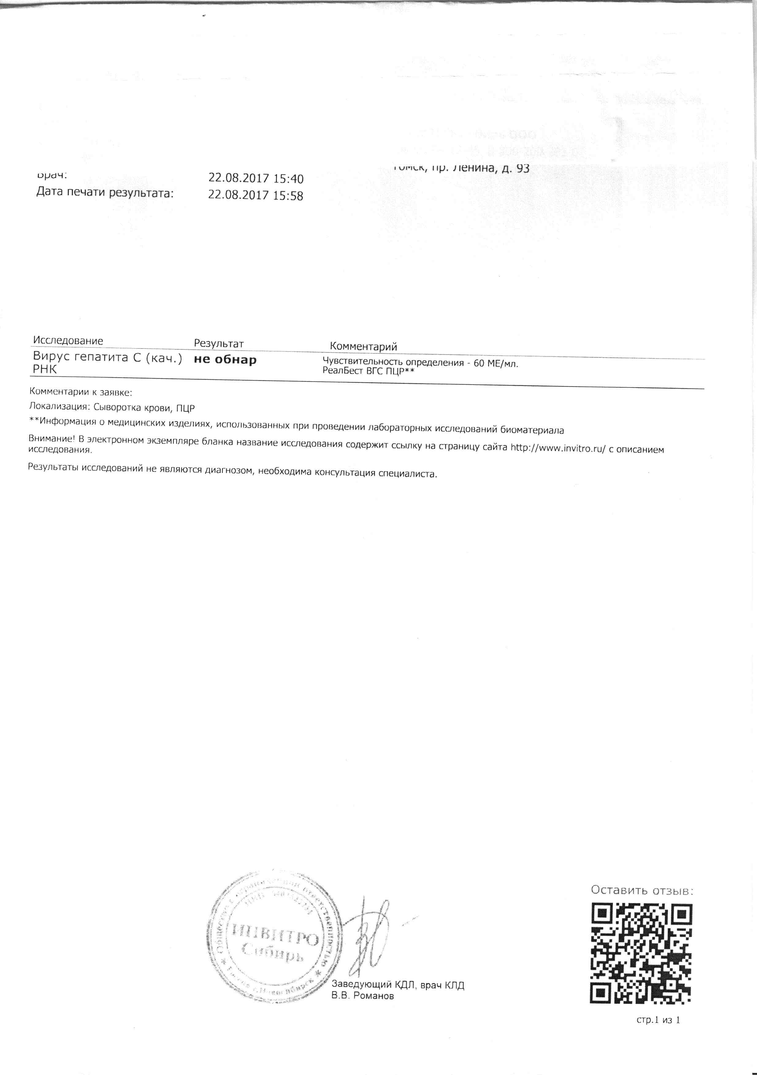 Ой. Ошиблась. Вот ответ с юнилаба. Вообще 250. : ......спасибо большое за обратную связь. Чувствительность теста «Гепатит С количественное исследование», Тест № 1306 –от 300 МЕ/мл, качественный анализ ВГС (Тест № 1303) от 250 МЕ/мл. На данный момент результаты выдаются без указания чувствительности. Форма выдачи результатов в последующем будет меняться.