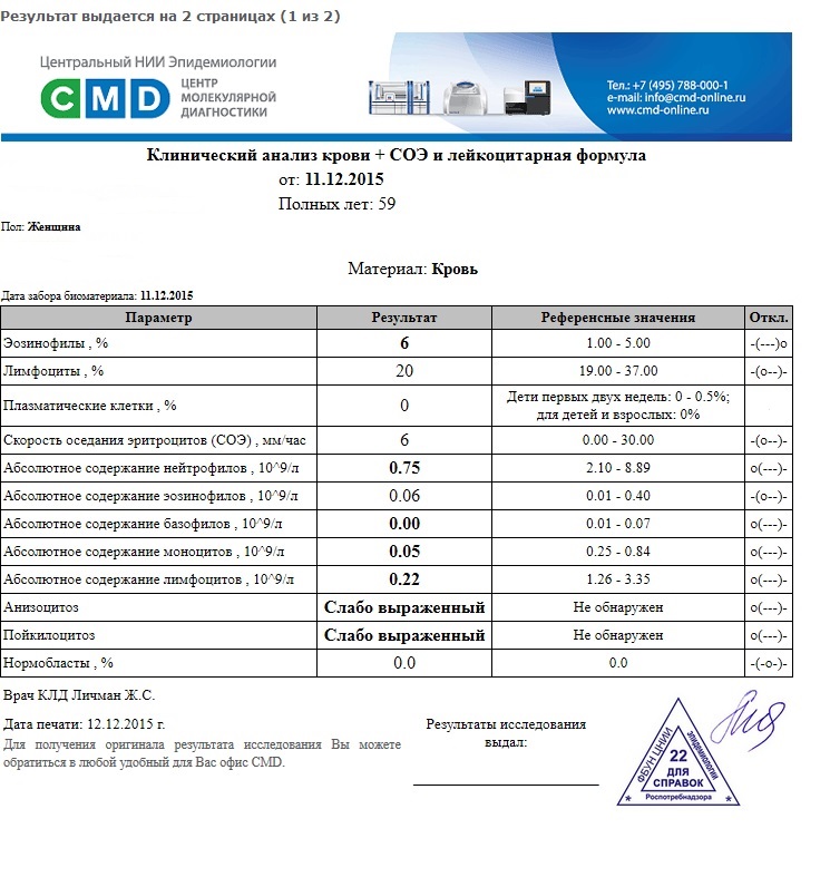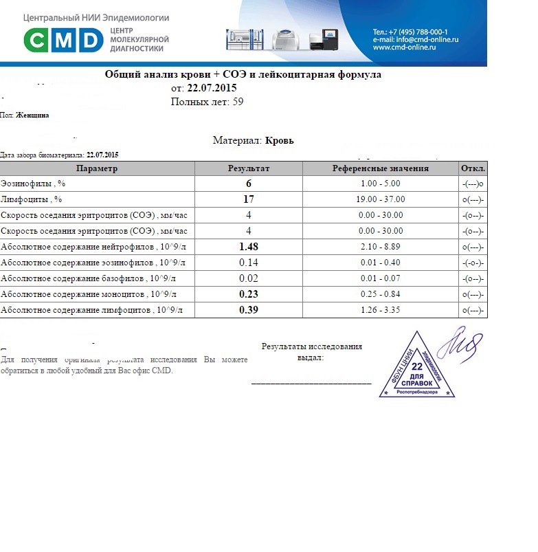 Абсолютное содержание эозинофилов (норма)=0,06 (референс 0,01-0,4)