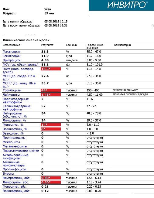 Но дело не в этом. у нее еще до терры была увеличена селезенка - 19 вроде, но точно не помню, смотреть нужно. И были низкие (и сейчас) тромбоциты (45-36) А сейчас, вдобавок, после терры падают лейкоциты и лейкоцитарная формула с низкими показателями.