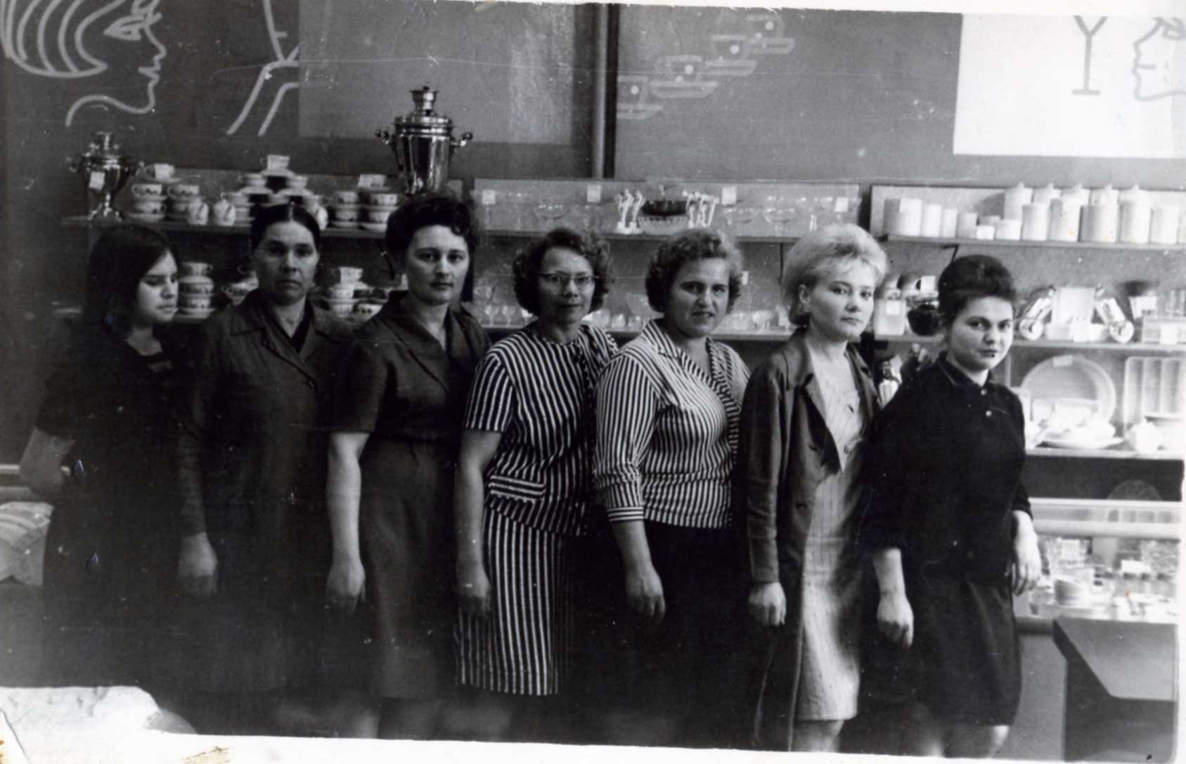 "гуси прилетели, на головку сели" и тд это опять в посёлке и это, только позже. а это магазин промтоваров в 1969 году. бригада продавцов во главе с мамулей) низкие прилавки и незатейливые рисунки на витринах . ретро одним словом.