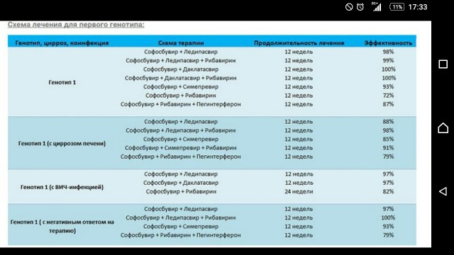 Вот такую таблицу нашла. Полезная. Как раз доя генотипа 1b.. Тут тоже написано, что соф и дак круче, чем соф и лед. Теперь сомнения есть все же. Как считаете?