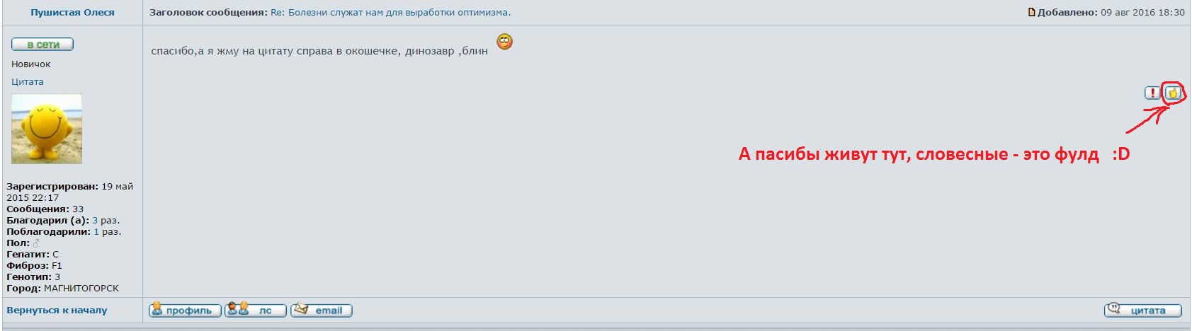 спасибо,а я жму на цитату справа в окошечке, динозавр ,блин