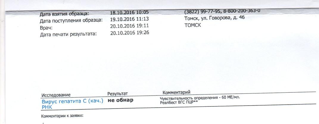 Рада за вас, мы все следили за вашей темой!ТатьянаТомск писал(а):Добрый день ! Пересдала ПЦР-РНК гепС в Инвитро-НЕ ОБНАРУЖЕНО!!Значит в Антиспид Центре была ошибка! Дорого она мне стоила -нервы,слёзы,деньги.Я чуть лекарства на 2ПВТ не заказала. Всем здоровья!!!! Софосбувир работает!