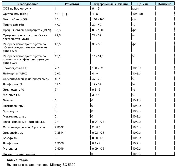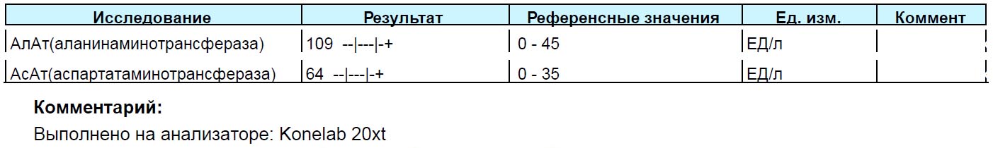 Готовы общий анализ крови и трансы. Трансы высокие по-прежнему; в ОАК, по-моему, ничего особенного для человека с гепсом, как вы считаете?