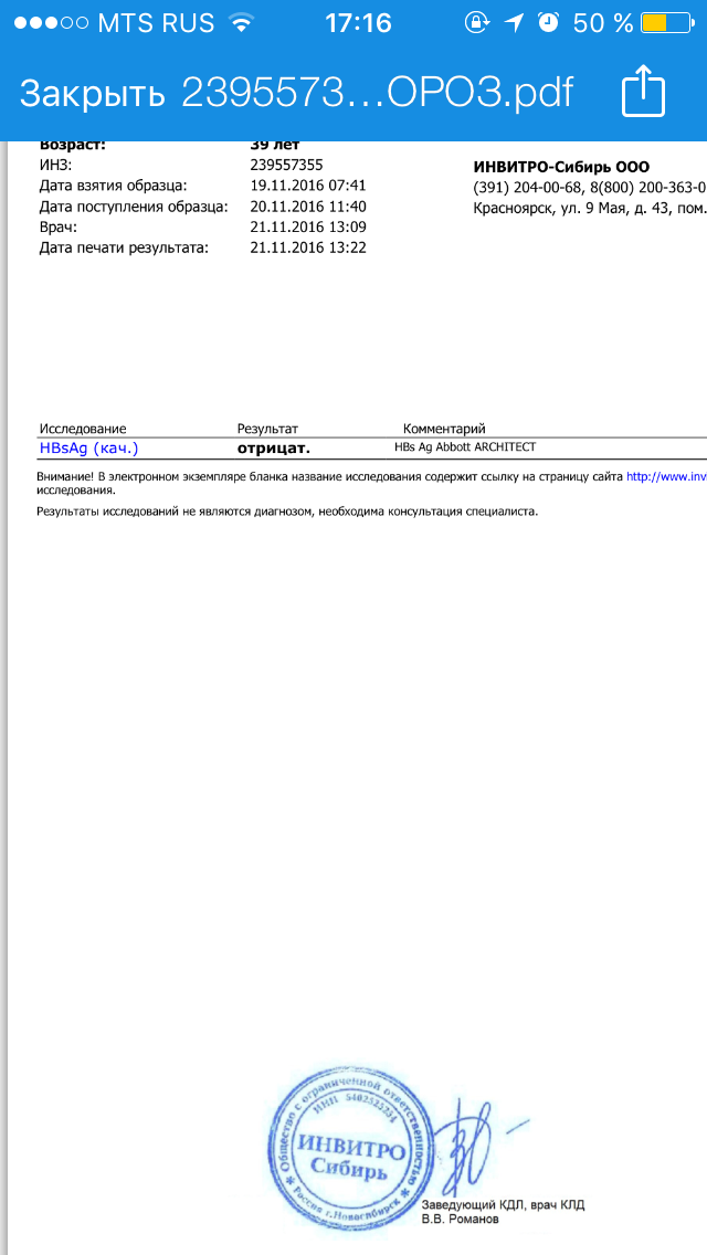 HBV DNA 1.4*10^4 ME/мл (2017) HBV DNA 500 ME/мл (2019)