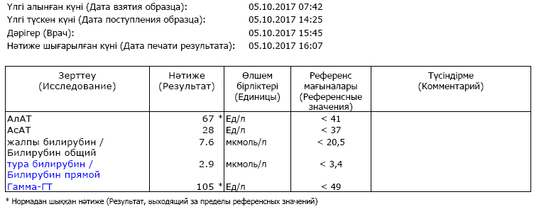 Не 2, а 1,5. До теры было 4,5 нормы. За две недели падение в 3 раза.Костян40 писал(а):АЛаТ после 2х нед терапии 2 нормы