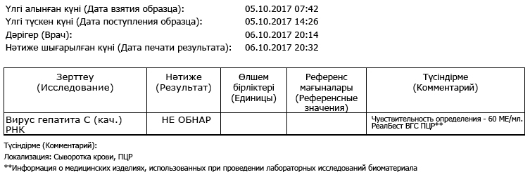 4 нед. ПЦР качест. НЕ ОБНАРУЖЕНО - 50 МЕ