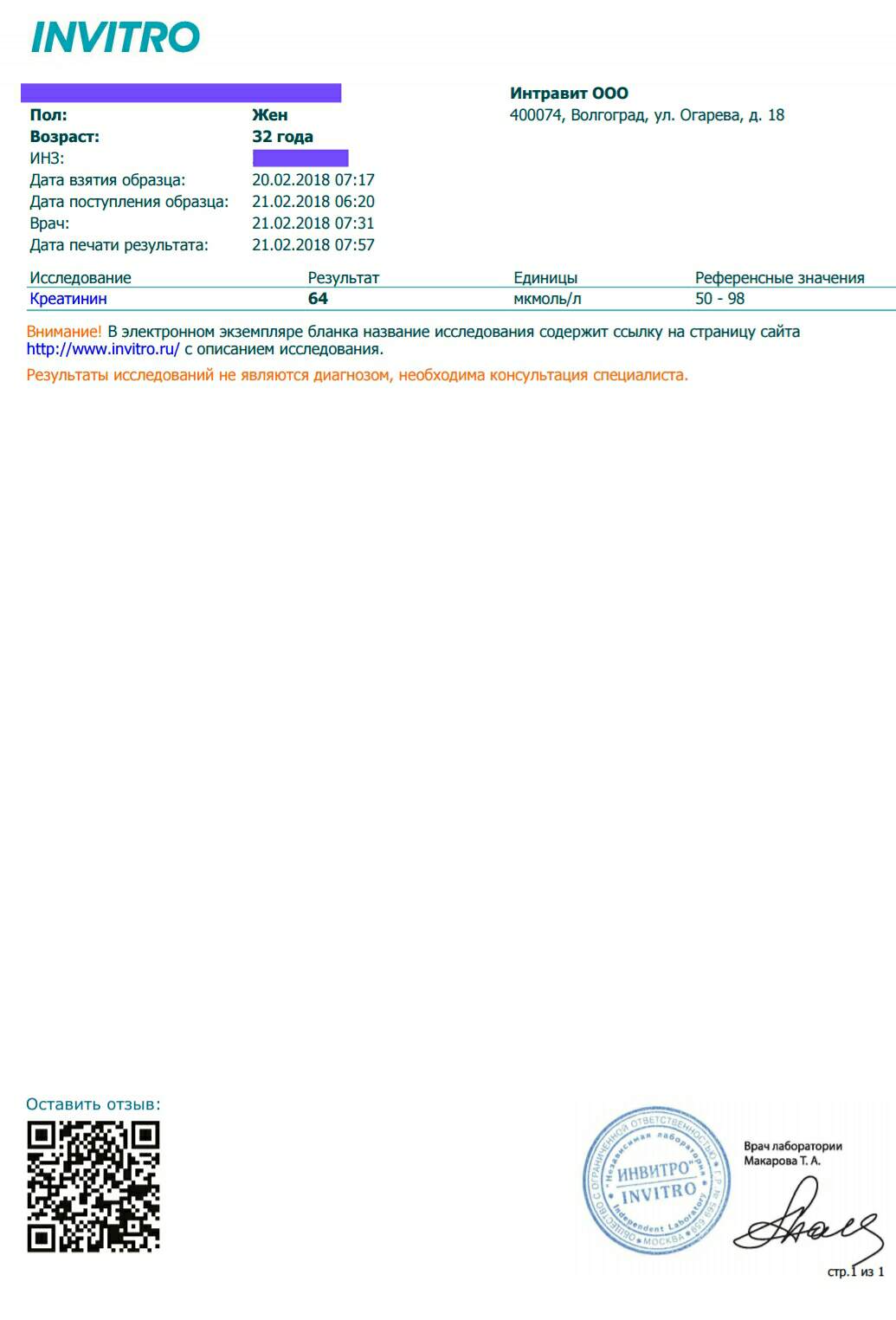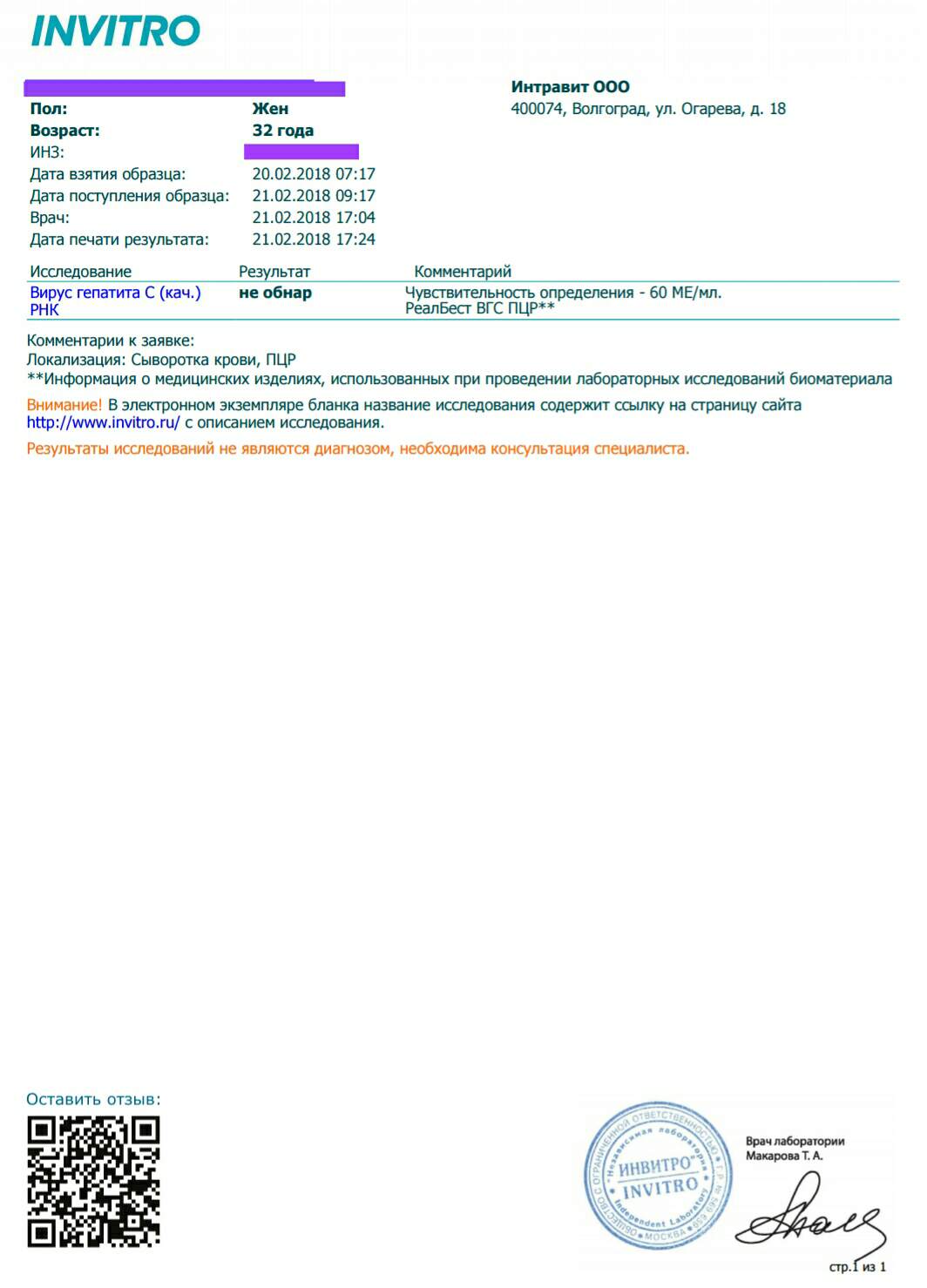 6 нед. - ПЦР - (60МЕ Инвитро)