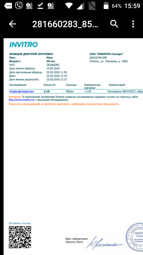 Спокойствие если в пределах нормы.makarova08 » 26 фев 2018 20:26 писал(а): онкомаркер,