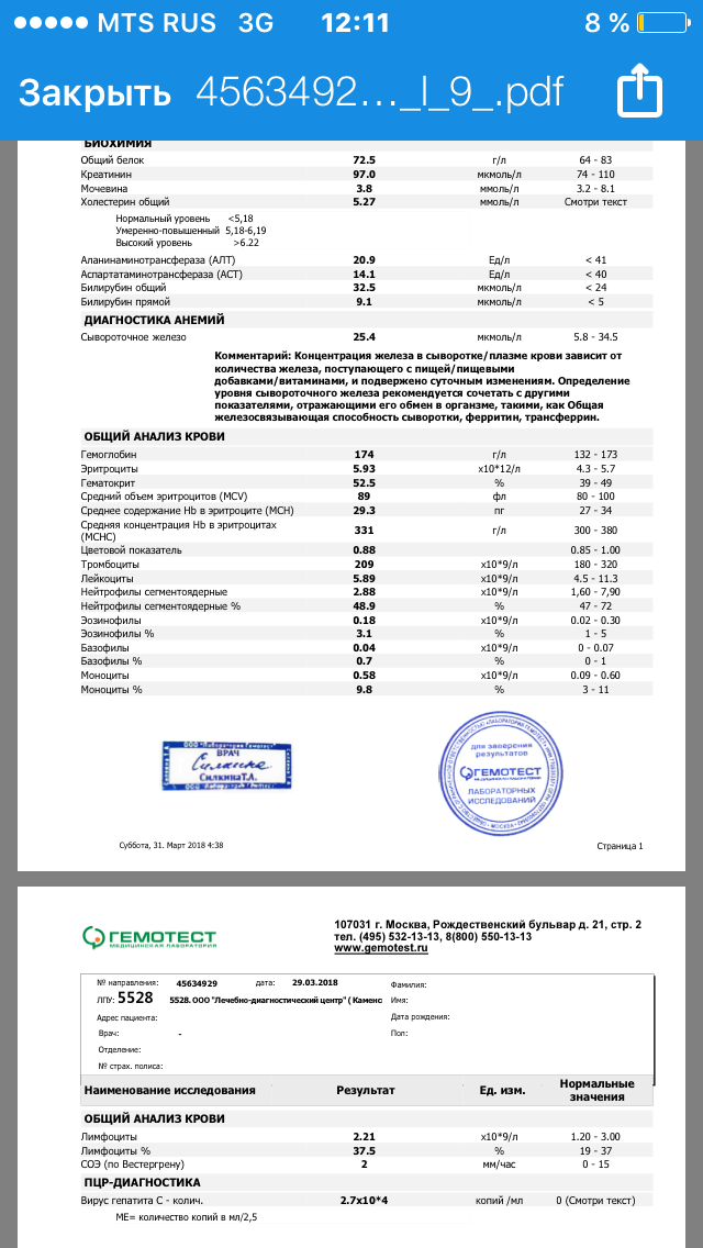 Я бы рибы добавила (для подстраховки) и пересдала анализ в Инвитро))