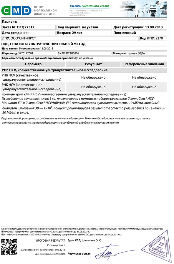 10 недель ПЦР не обнаружен !!! Количество ультра CMD
