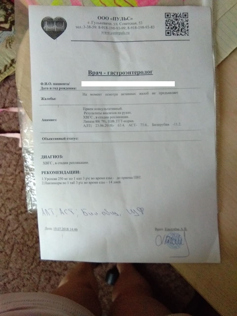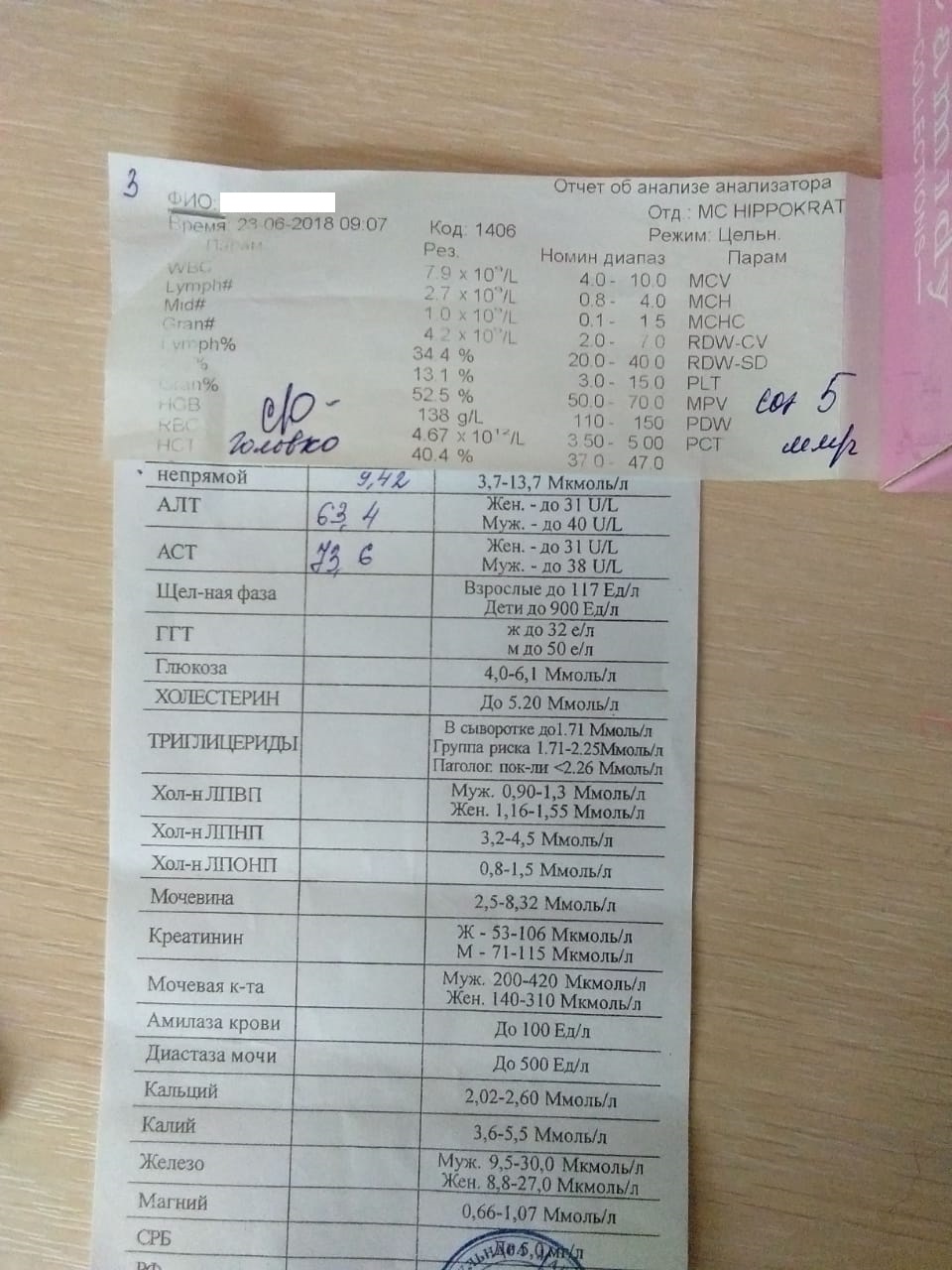 в/н: 2.60х10*6 МЕ/мл, АЛТ-68. АСТ-36.