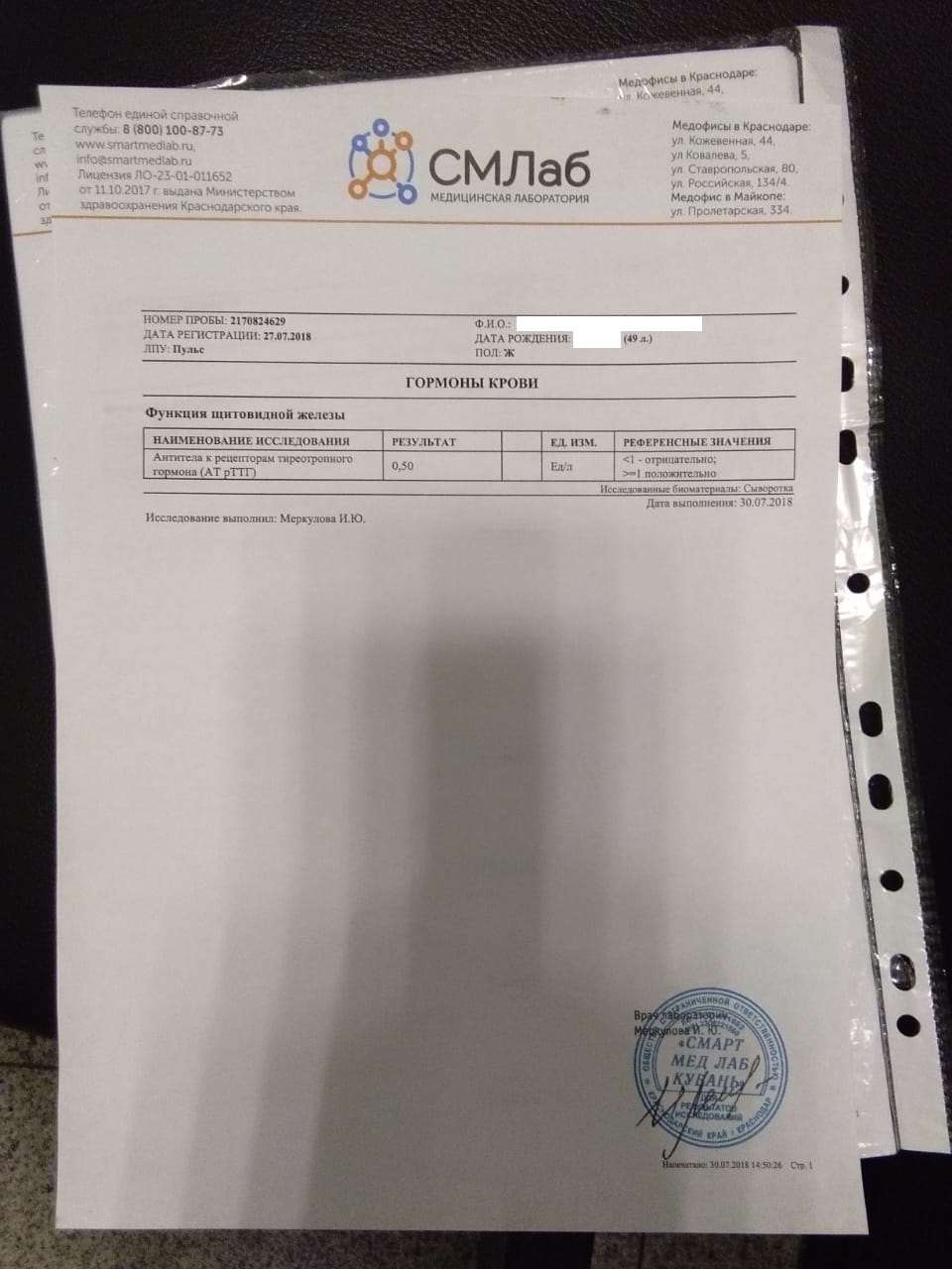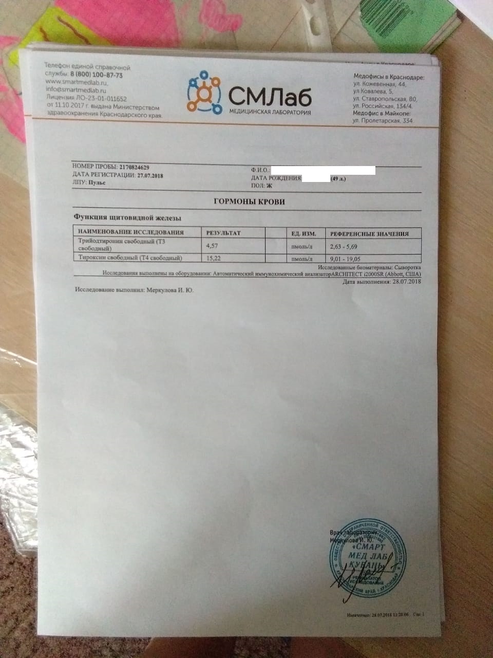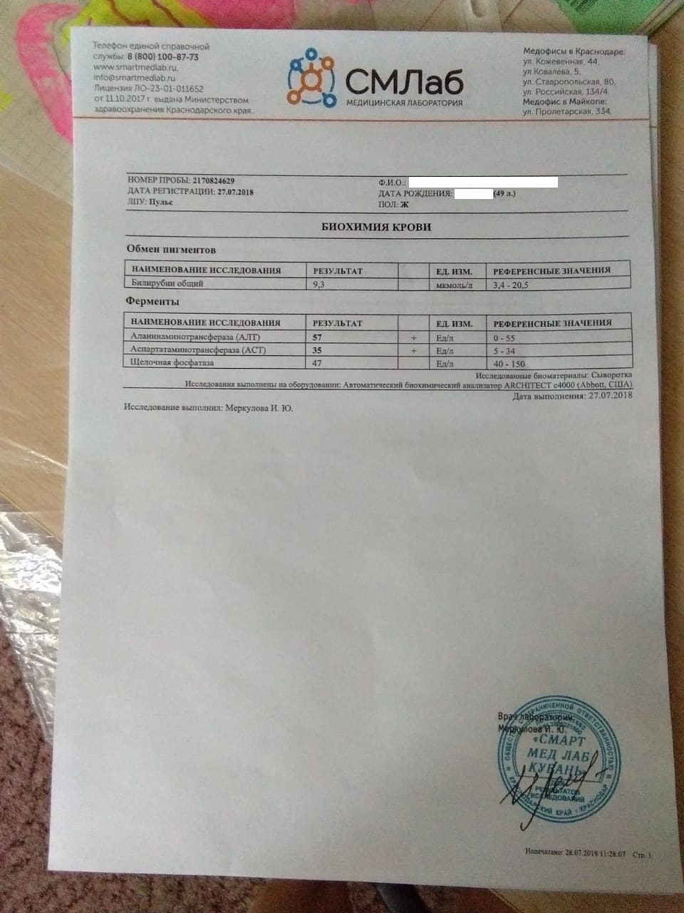 По просьбе Светы, выкладываю ее анализы: