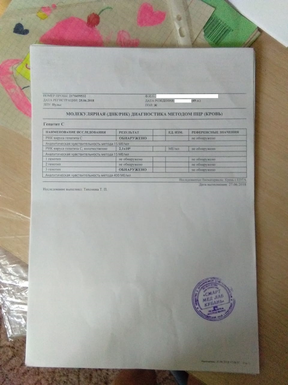 Гепатит С ген2,вирусная нагрузка 1.1х10^6 me, фиброз F0.