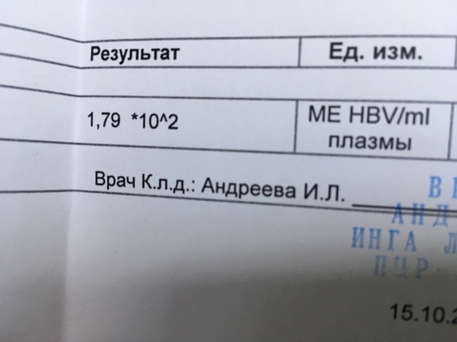 Ноябрь 2017 ПЦР ДНК 4.17Х10^6 ME/ml, Алт 52, HBsAg кол.1002МЕ/ml, F-1