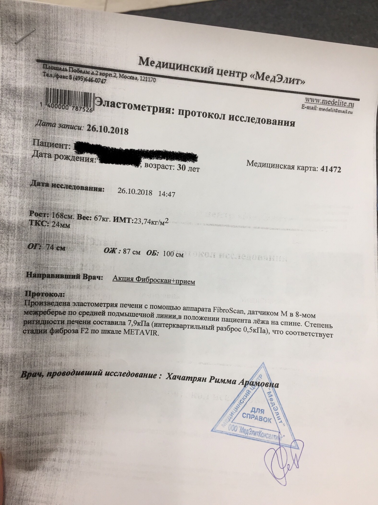 Не надо. Фиброскана достаточно. Фиброз определён уже (F-2).Unikorovna писал(а): ↑26 окт 2018 16:31 советовала пройти на втором аппарате скан печени, что скажите надо ?
