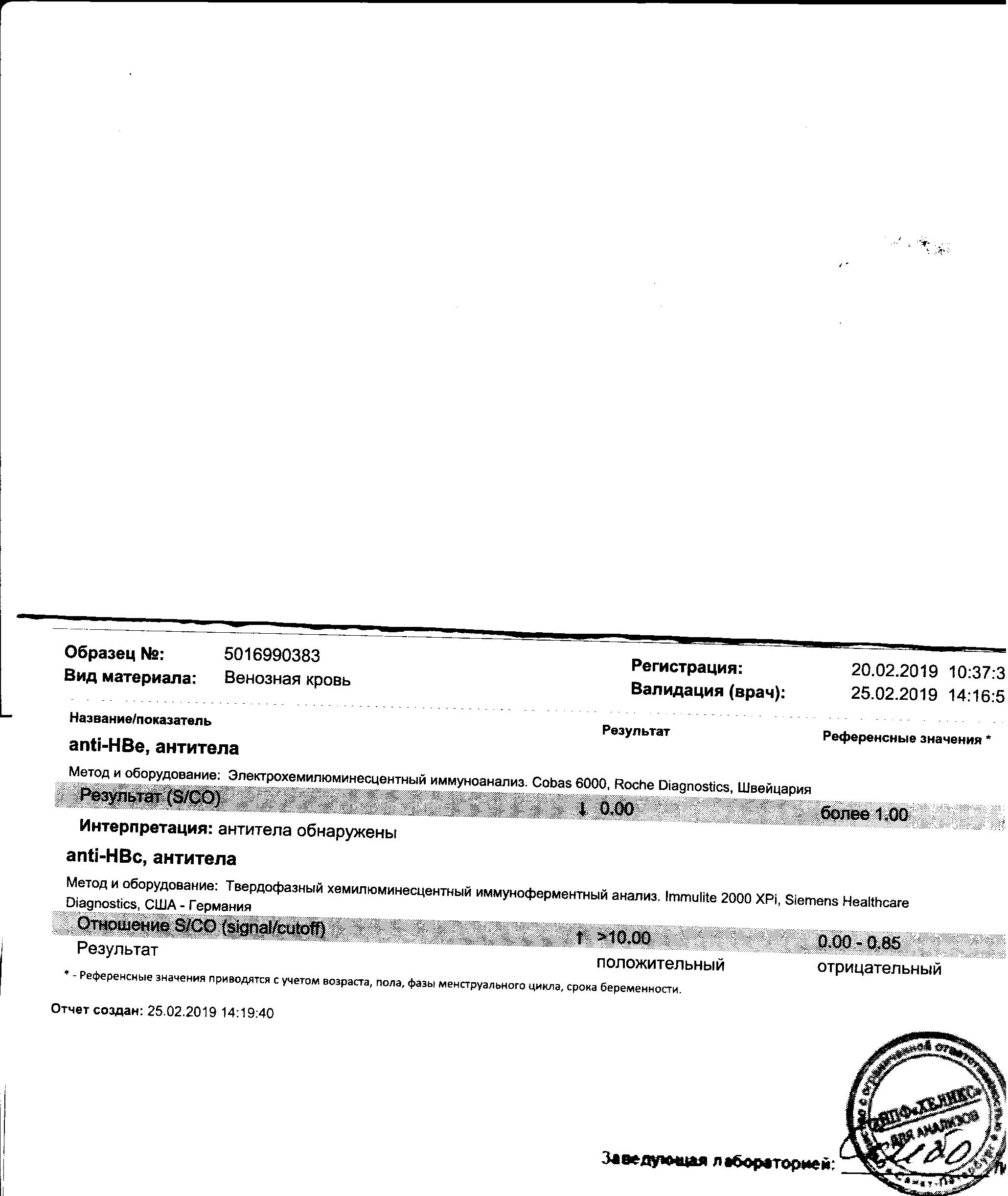 HBsAg количество: 12.2018-1010ме, 12.2019-864ме, 12.2020-763ме