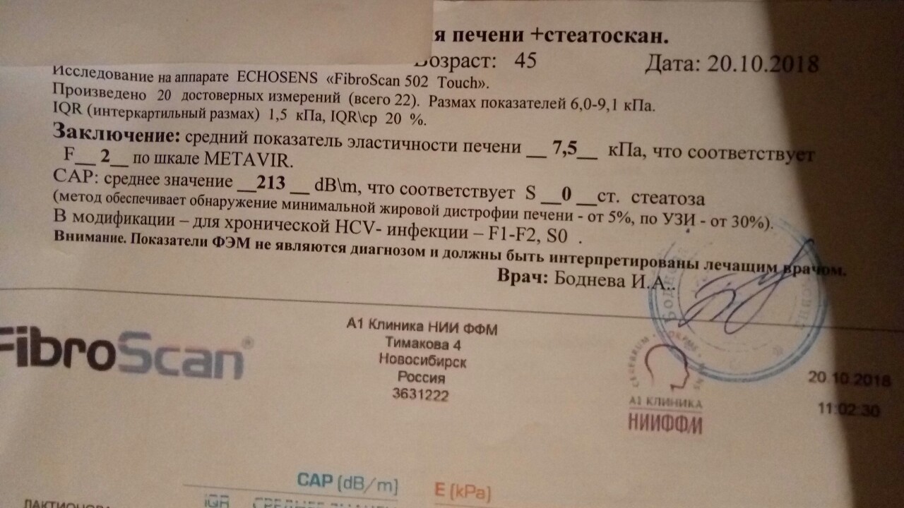 Эластография F1(7,2кПа) Соф+дак+риб 12 недель