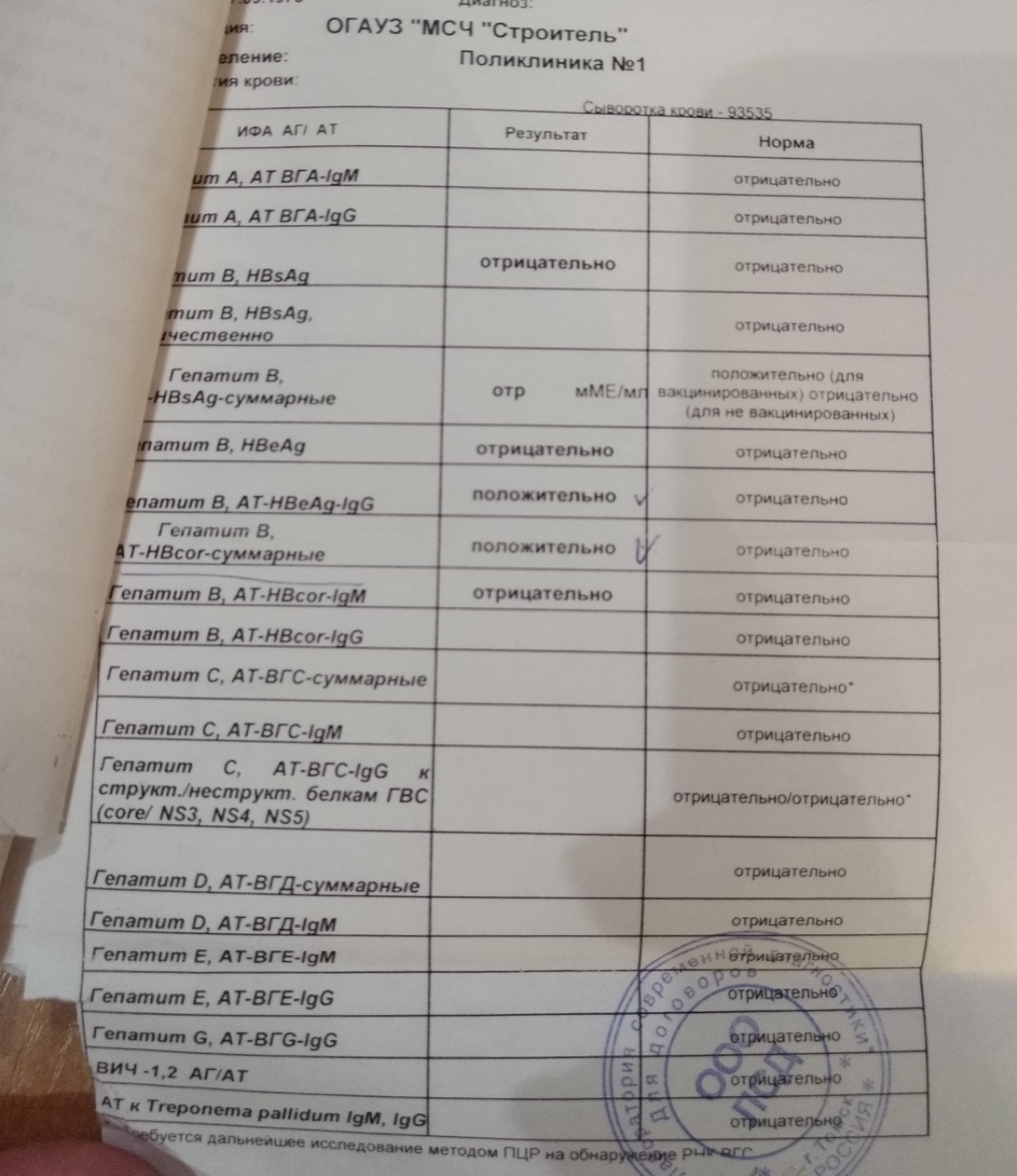 У тебя кстати гепатит В был в анамезе. Т.е. ты им болела.