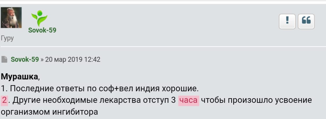Или спроси Сергея (Sovok59). Сто раз в своей теме Сергей писал, что даже совместимые лекарства принимать с 2х часовым отступом.