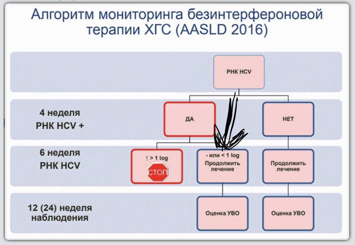 Означает, что если вирусная нагрузка на 6 Нед повысилась более чем на 1 log ( степень) по отношению к 4 Нед., то терапию можно останавливать. Это и есть прорыв. Если не повысилась или повысилась меньше, то терапию спокойно нужно завершать и удача стремиться к официальной процентовке.Andre151168 писал(а): ↑27 янв 2019 12:26 подскажите пожалуйста для особо одарённых, что означает значение помеченное стрелкой?