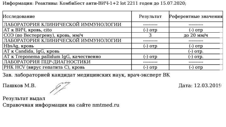 - Гепатит: Не обнаружен
