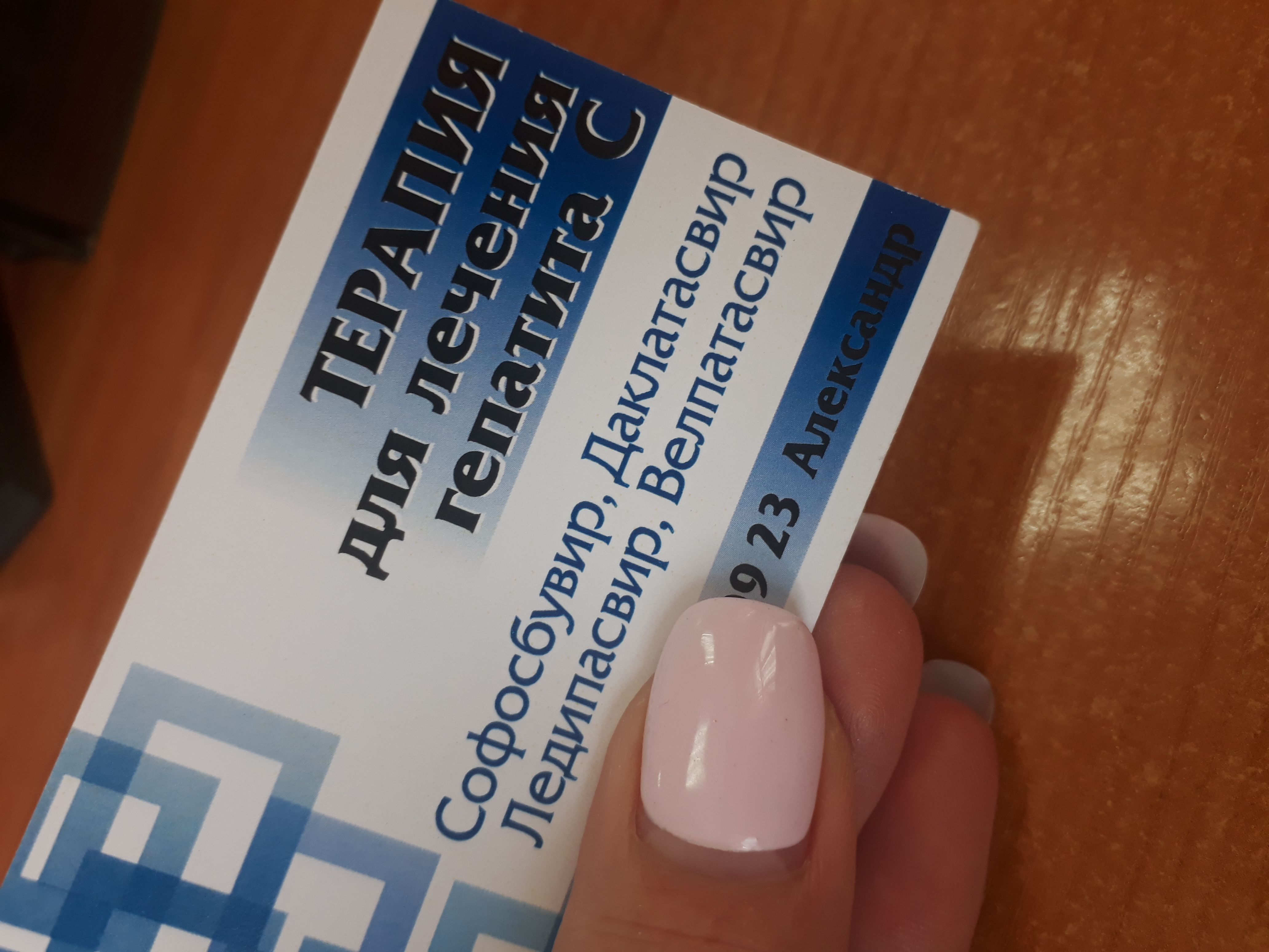Еду от врача. Ничего особо интересного. Завели карту, выписали назначение, все таки соф+дак (45 тысяч). Говорит, для моей нагрузки и генотипа подойдет. Про соф+вел спросила, сказал что он дороже, выйдет около 68 тысяч. Мол , давай начнем с софдака. На 4 неделе после анализов, посмотрим как сработает терапия, если что добавим рибавирин