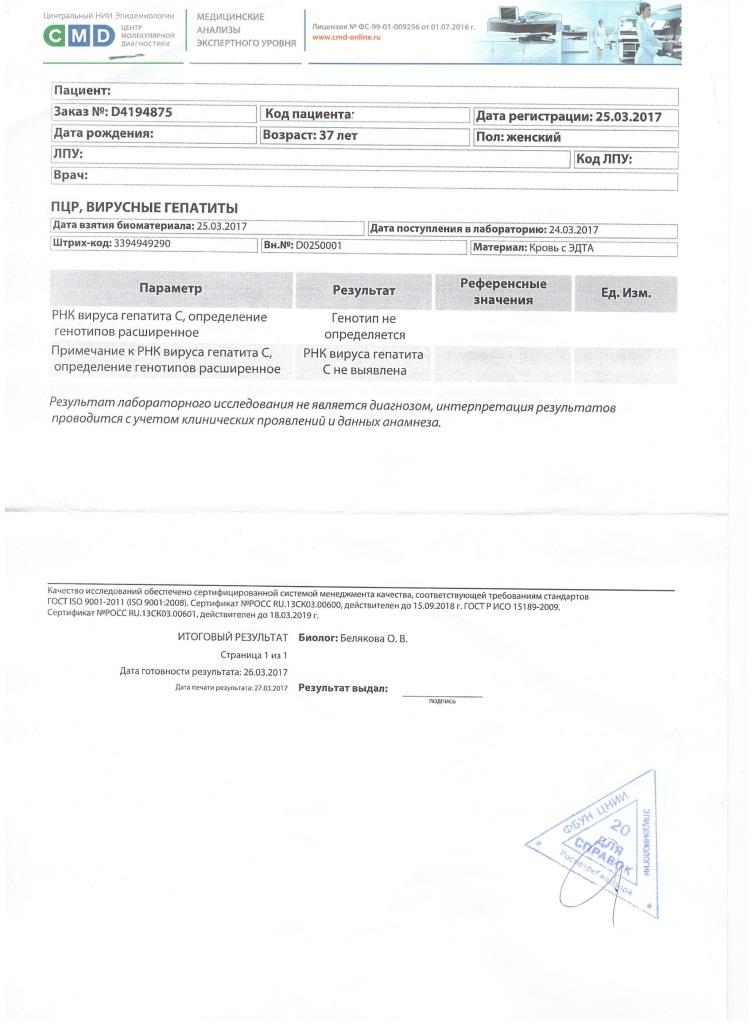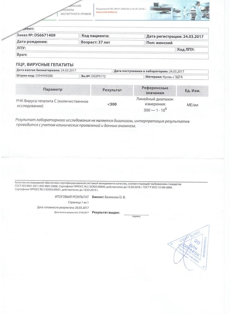 Моя ПВТЭтот результат нужно интерпретировать так: Не обнаружено достаточное количество вируса для определения генотипа.Miss197 писал(а): а только генотипирование, в результате получила бы только "не обнаружено", тогда это бы