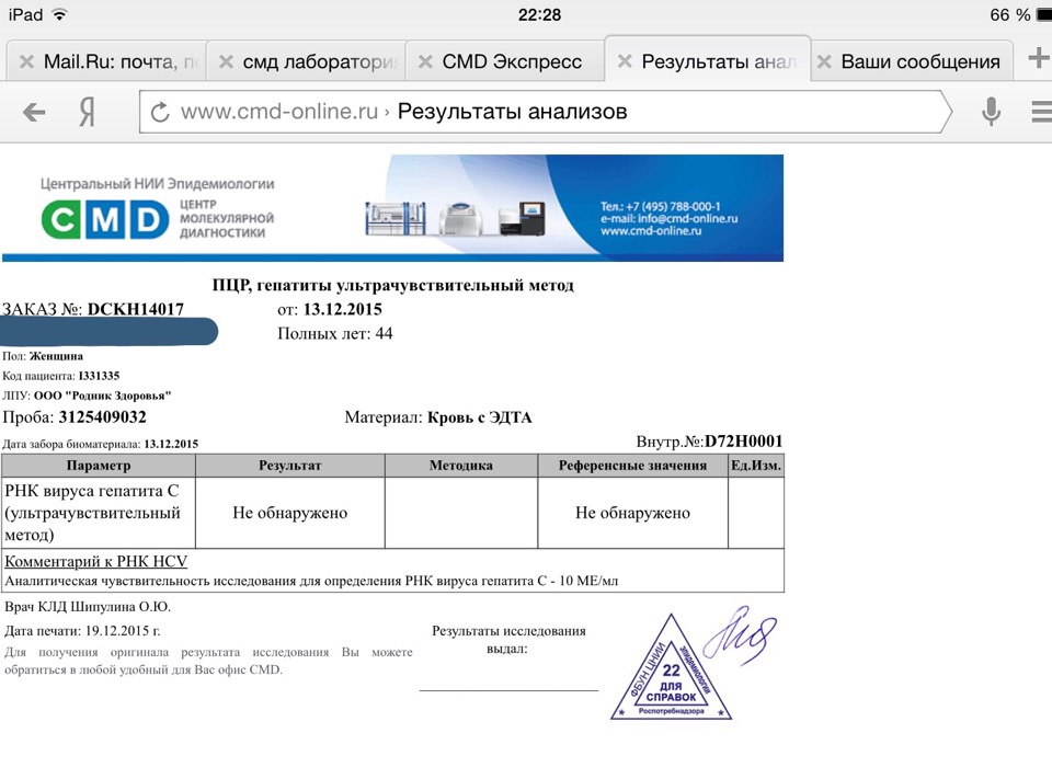 Всё отлично)) сегодня анализ пришёл: -не обнаружено!
